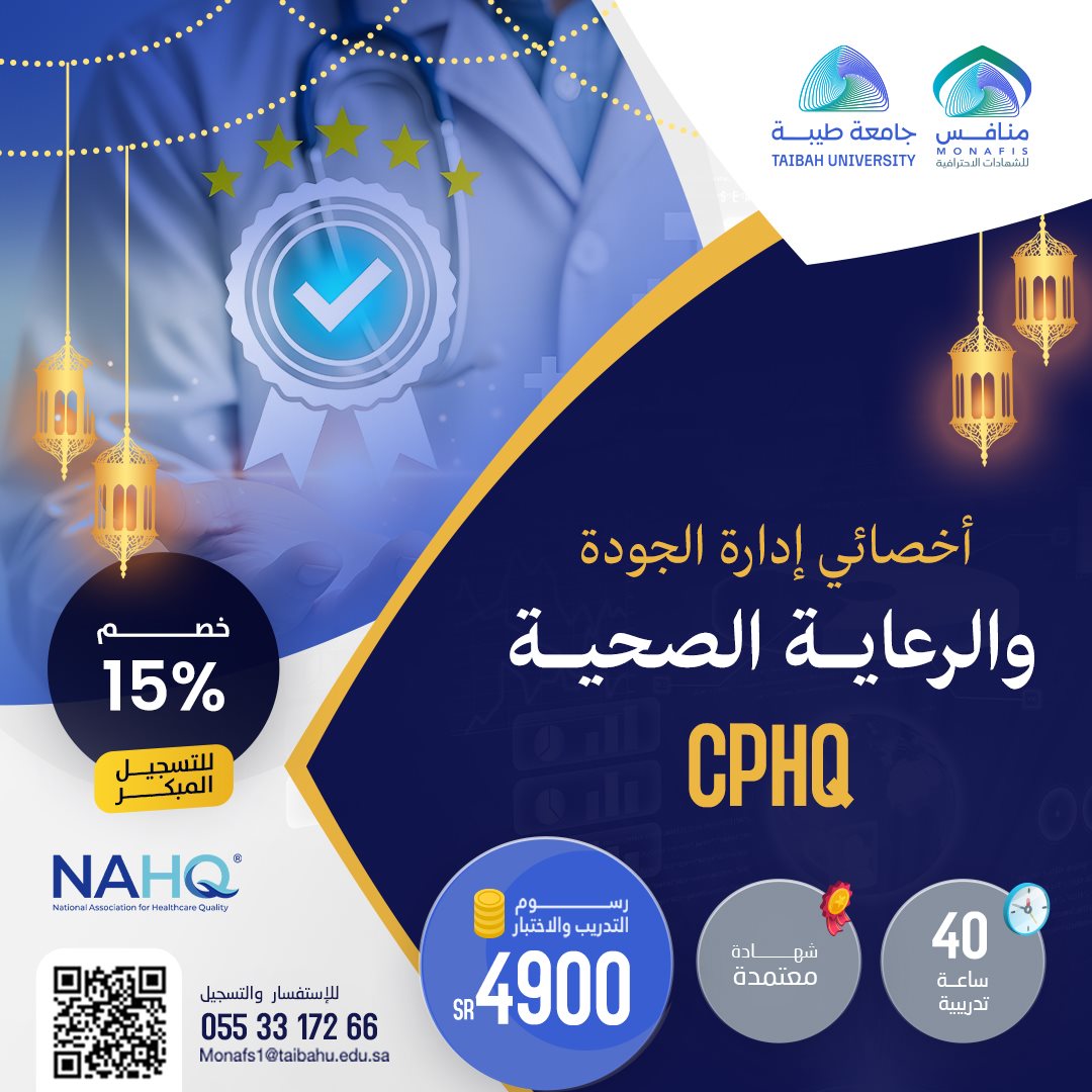 أصبحت جودة الرعاية الصحية وسلامة المرضى واحدة من أهم العناصر الأساسية لنظام الرعاية الصحية بشكل عام، ولقد سعت العديد من الجهات الصحية العالمية على نشر ثقافة الجودة الصحية هادفين بذلك المساهمة في تطوير الخدمات وتحسين الرعاية المقدمة للمرضى والمستفيدين، ورفع كفاءة العاملين في المجال الصحي، وقد أكد التوجه العالمي على أهمية هذا المفهوم من خلال تقديم شهادة البورد الأمريكي في جودة الرعاية الصحية CPHQ والتي تمنح الحاصلين عليها اثباتا لخبراتهم وتؤهلهم للعمل كأخصائيين في جودة الرعاية الصحية أو منسقين للجودة نظرا لمعرفتهم الشاملة في المجال، ومقدرتهم على إحداث آثر إيجابي وفعال في بيئة عملهم.